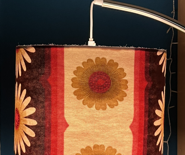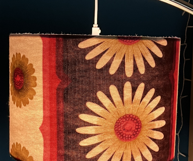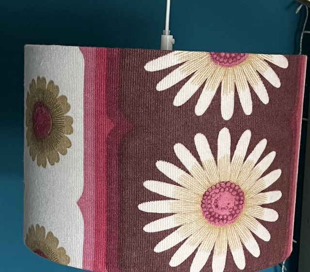 suitable for a pendant fitting or a lamp. This lampshade is made from a genuine vintage fabric in shades of white, pink & burgundy.